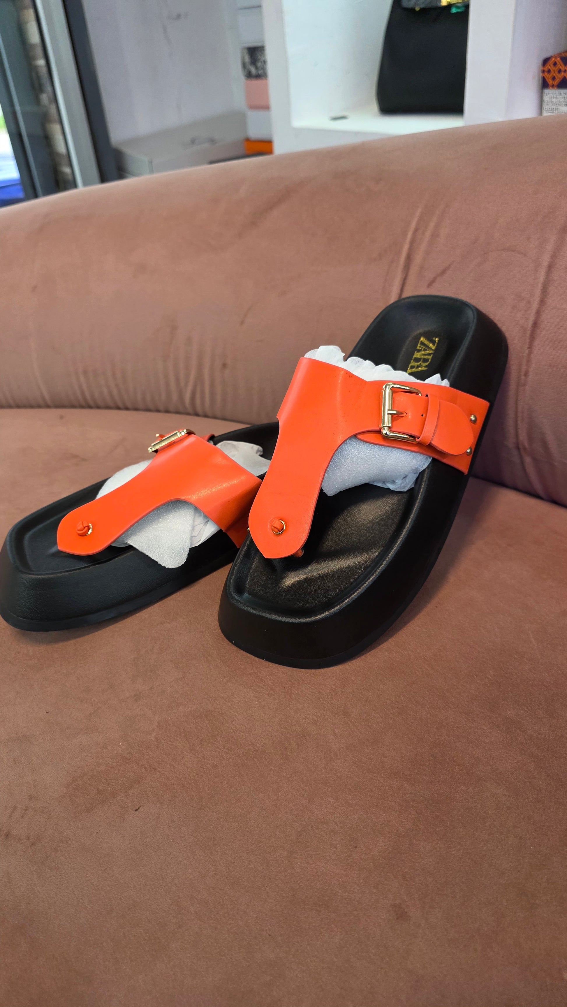 Parfaites pour un style audacieux, ces sandales à bride ajustable offrent confort et élégance. Leur couleur orange éclatante et leur semelle noire robuste en font un accessoire incontournable. Fabriquées avec des matériaux de qualité, elles sont prêtes à être portées. Commandez dès aujourd'hui !
